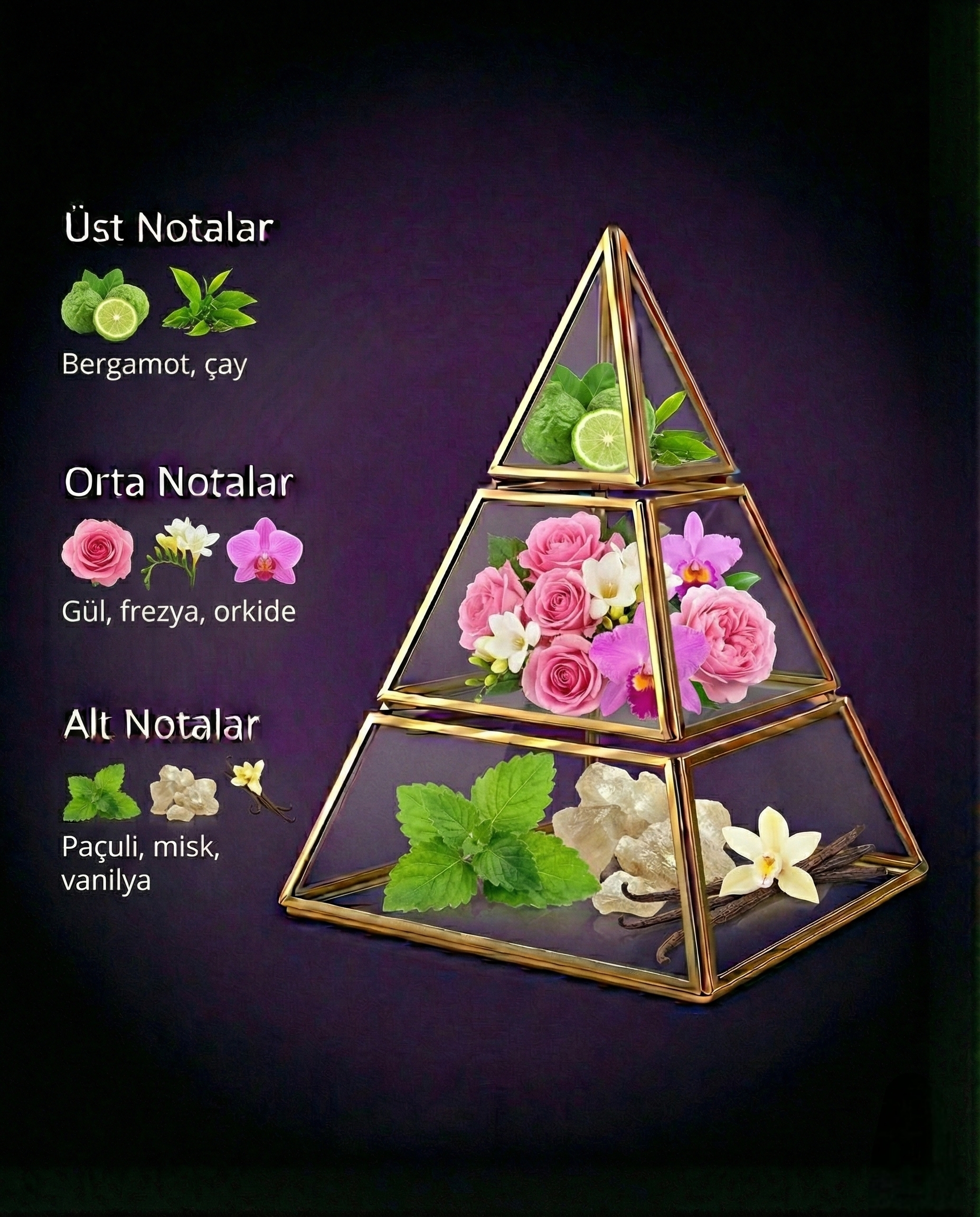 Dip Notaları: Paçuli, vanilya, misk, sıcak amber