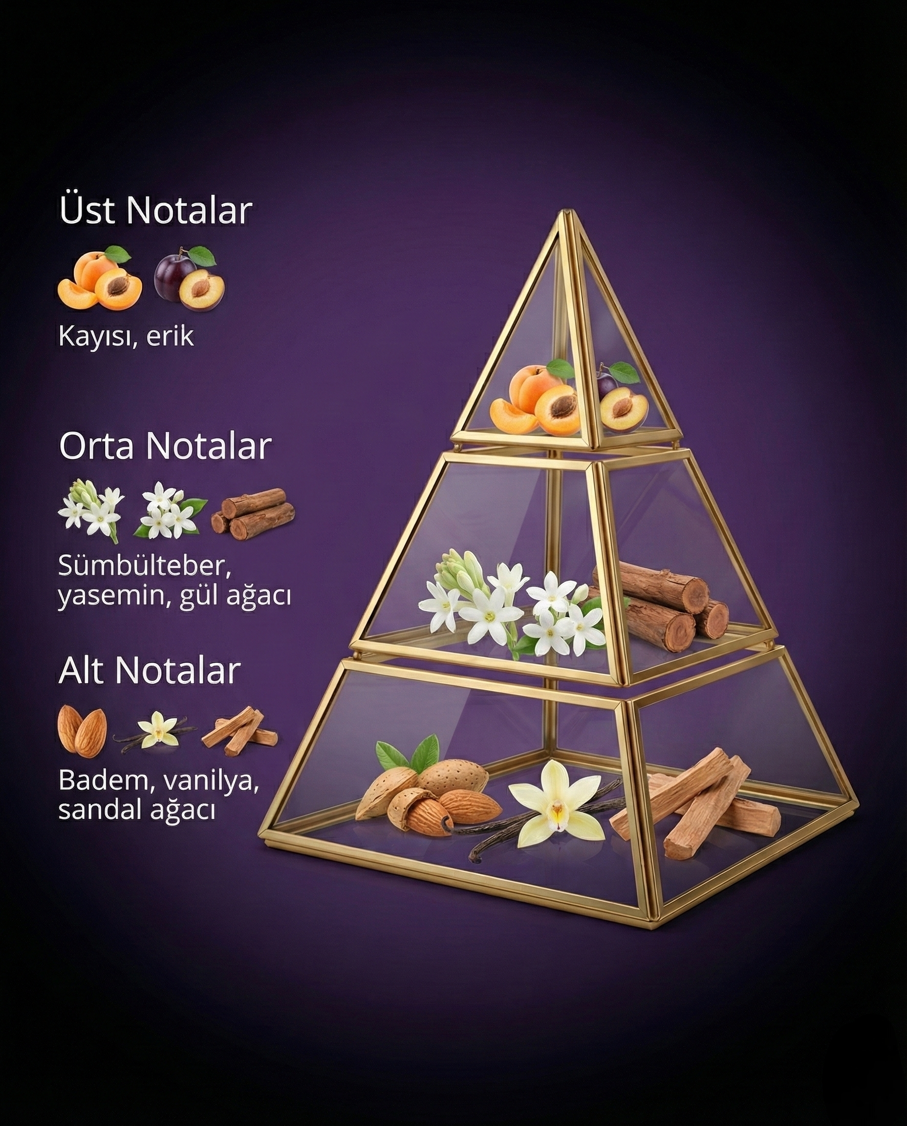 Tepe Notalar: Badem, kayısı, vanilya