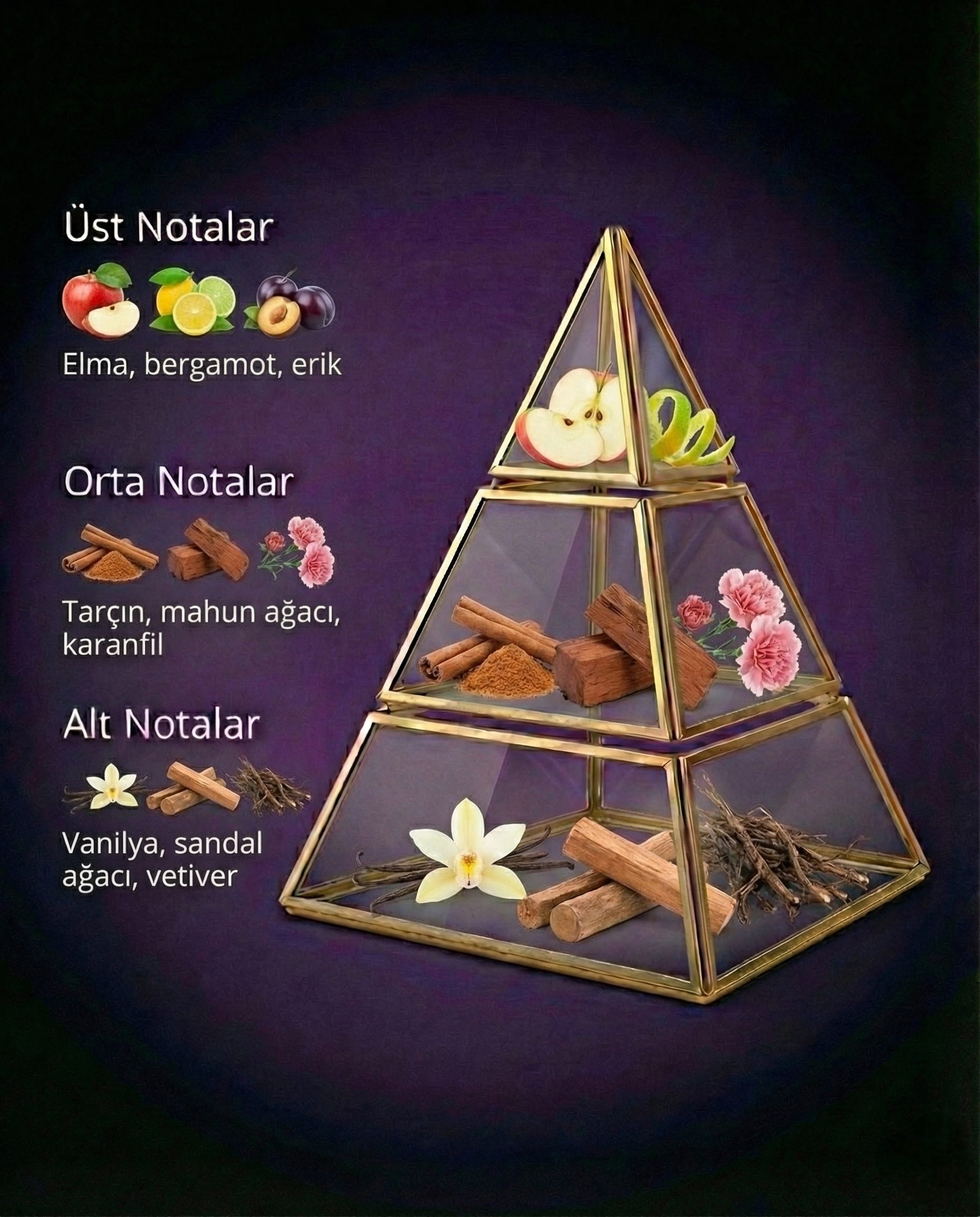 Tepe Notalar: Elma, bergamot, erik