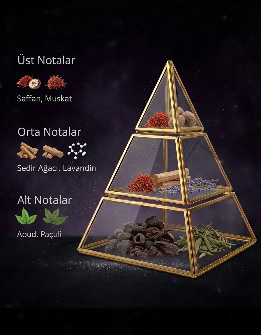 - Üst Notalar: Lavanta, Safran, Muskat (Baharatlı ve Aromatik Giriş)