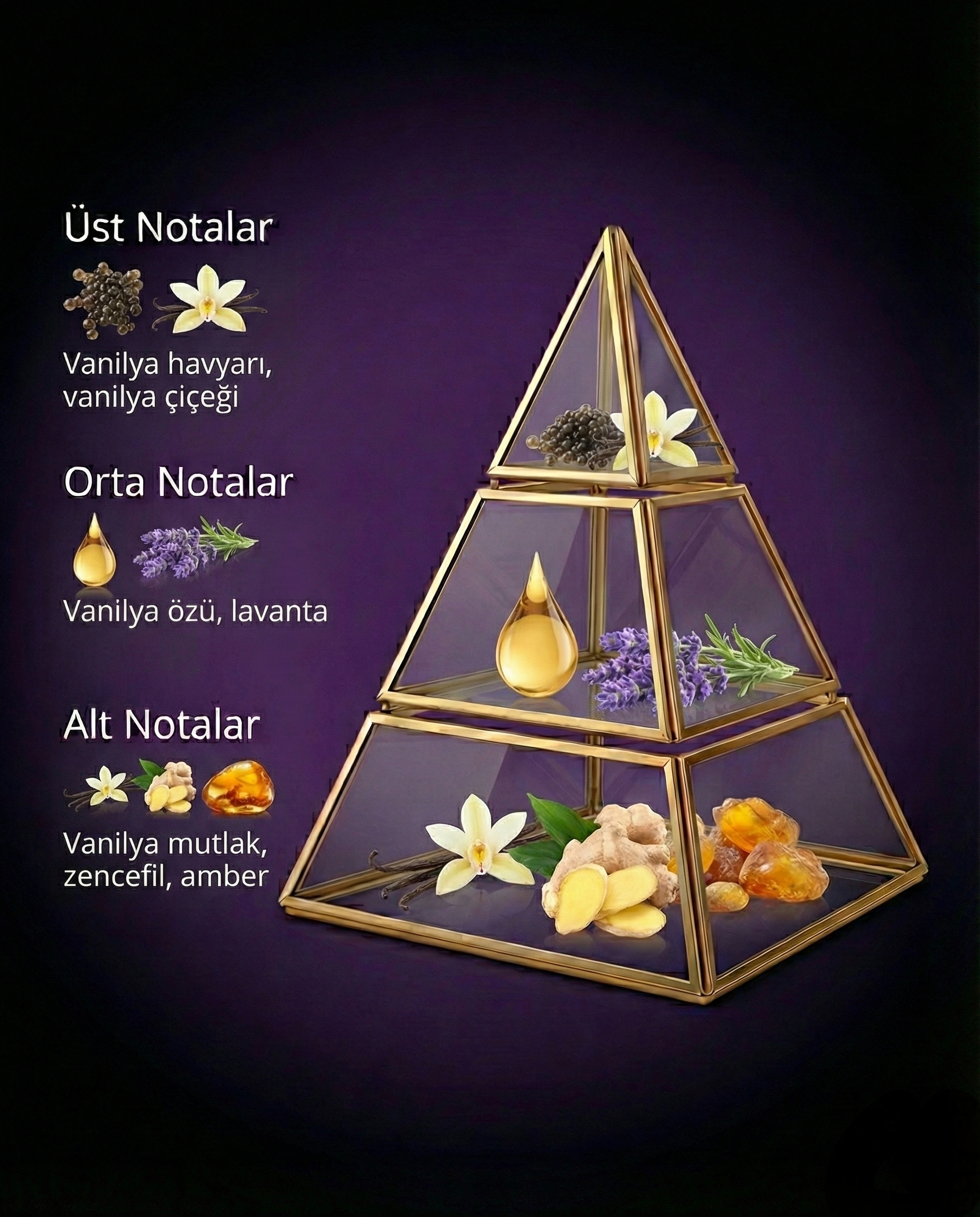 EDP (Eau de Parfum) — Yüksek esans yoğunluğu sayesinde tende gün boyu kalıcı ve etkileyici bir koku deneyimi sağlar.