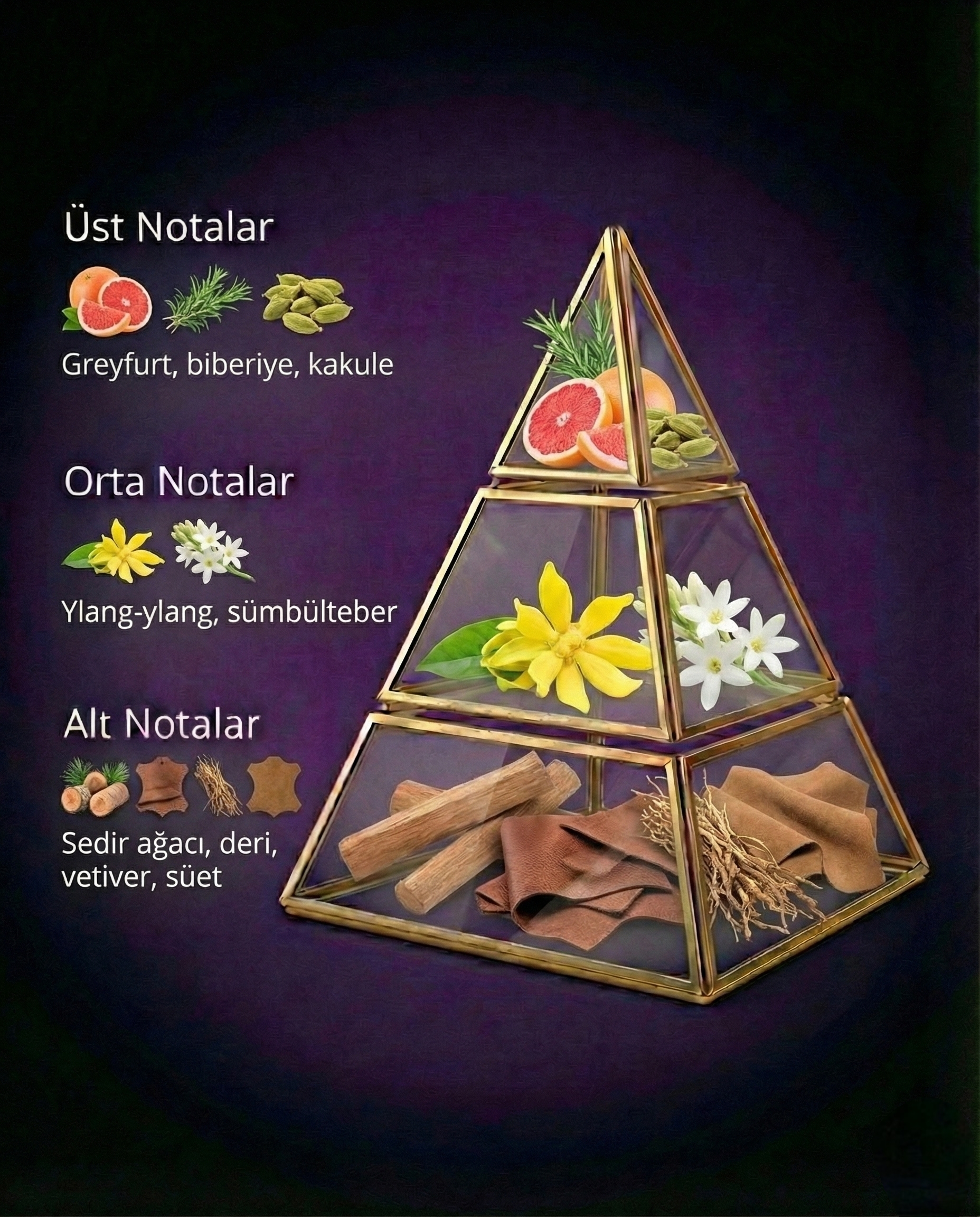 Dip notalarda sedir ağacı ve vetiverin odunsu yapısı misk ile birleşerek sade ama son derece çekici bir kalıcılık bırakır.